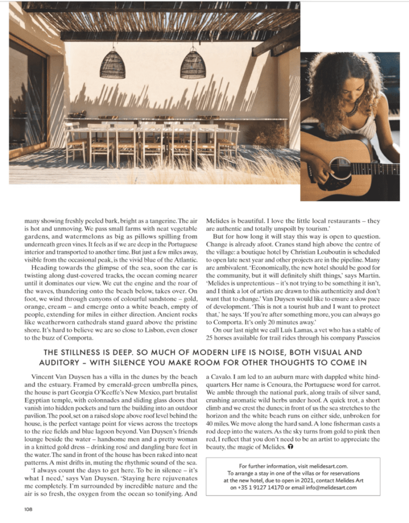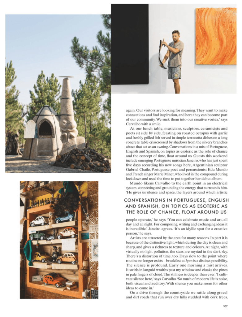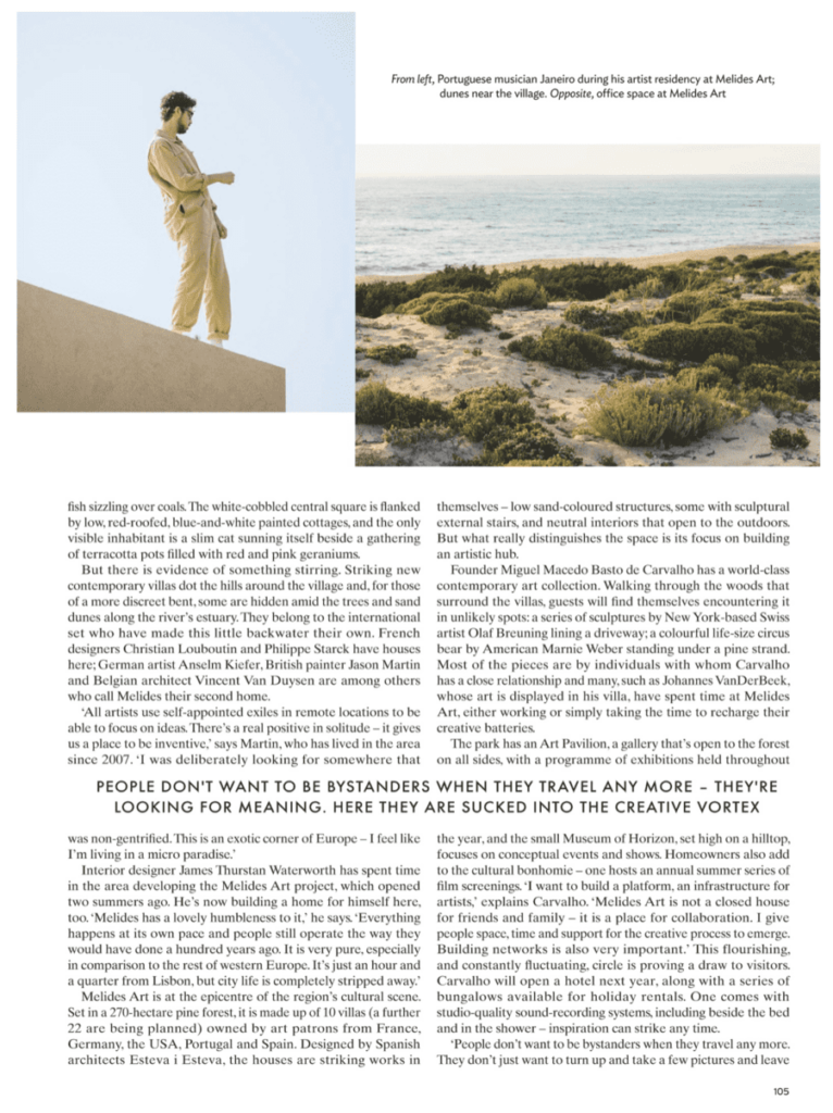 “It’s a place where you can experience the powerful alchemy of art and nature in the wildly beautiful… and glorious surroundings of the Alentejo coastal region”