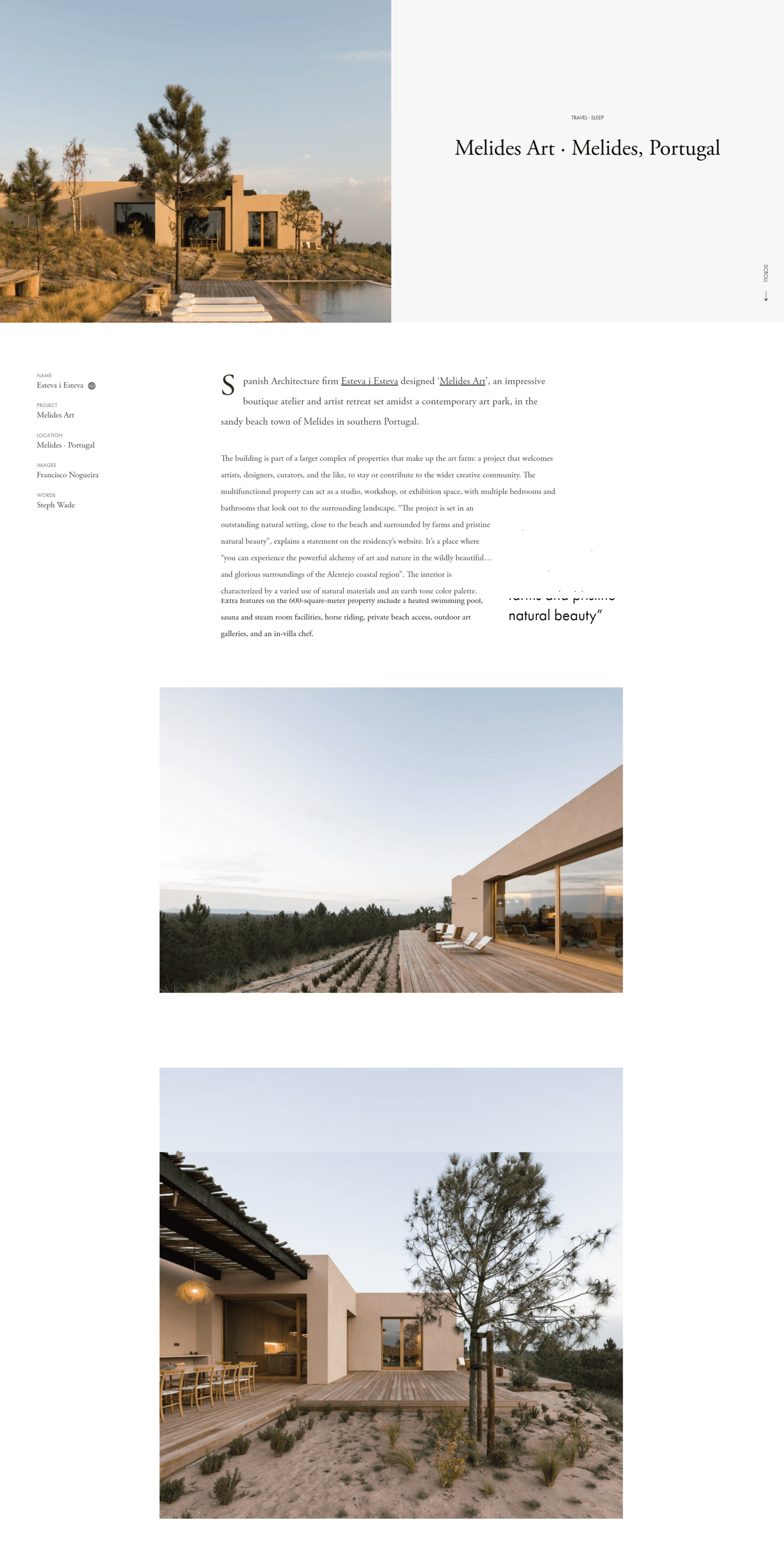“It’s a place where you can experience the powerful alchemy of art and nature in the wildly beautiful… and glorious surroundings of the Alentejo coastal region”