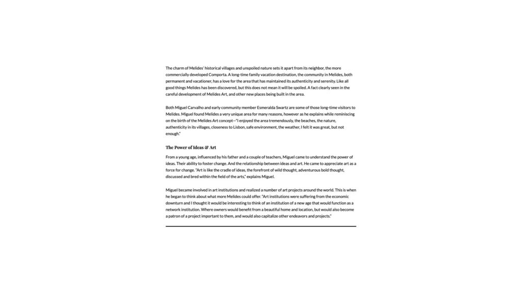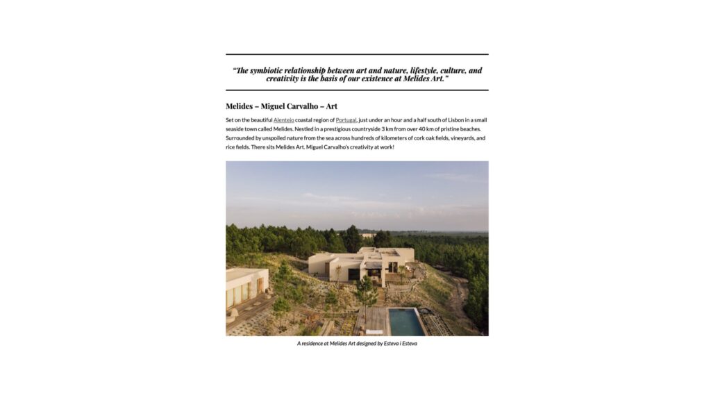 “It’s a place where you can experience the powerful alchemy of art and nature in the wildly beautiful… and glorious surroundings of the Alentejo coastal region”