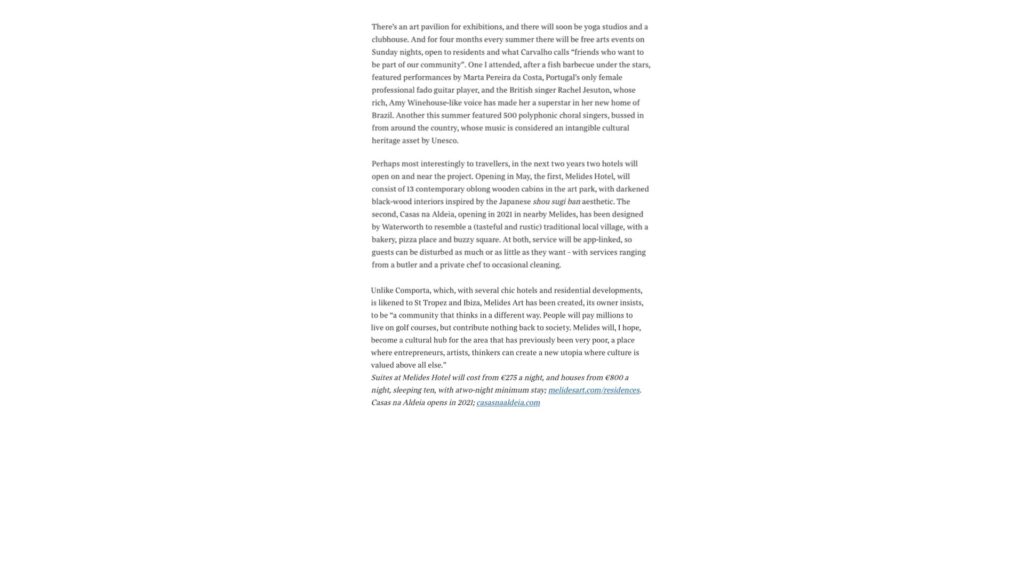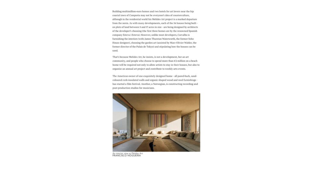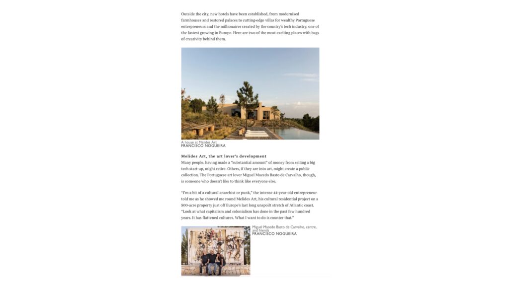 “It’s a place where you can experience the powerful alchemy of art and nature in the wildly beautiful… and glorious surroundings of the Alentejo coastal region”
